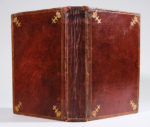 In-4, veau cerise, dos lisse et muet , triple filet doré bordant les plats, avec croix de Lorraine couronnée en écoinçons, tranches dorées, coins restaurés (coiffe de tête usée, mors frottés, titre restauré, qq. rousseurs). Première édition en français de ce curieux recueil de merveilles et prodiges. Deux tomes supplémentaires paraîtront en 1612. Exemplaire réglé. (Brunet III, 1323).
