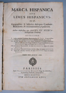 postérieur, dos lisse, pièce de titre basane crème (mors inf. en partie fendu, piqûres de vers au mors sup, puis en marge du 1er tiers du vol., sans gravité, puis travaux en marge des col. 530 à 655 ; certains f. brunis ; portrait-frontispice et carte en déficit). Edition originale posthume, établie par Etienne Baluze qui fut le secrétaire de l'auteur, l'historien du Béarn Pierre de Marca (1954-1662), évêque de Couserans, archevêque de Toulouse puis de Paris. Dédié à Jean-Baptiste Colbert, l'ouvrage constitue une source importante de l'histoire régionale, en particulier parce qu'on y trouve reproduites des pièces d'archives aujourd'hui disparues.