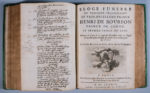 pièces, certains titres rognés court en pied supprimant la mention de privil.). 1. Marie-Thérèse d'Autriche, reine de France, par l'abbé de La Chambre, 1684. - 2. Marie-Thérèse d'Autriche, reine de France, par M. Des Alleurs, abbé de la Réau, 1684. - 3. Marie Anne Christine de Bavière, dauphine de France, par Pierre de La Broüe, 1690. - 4. Marie Anne Christine de Bavière, dauphine de France, par Esprit Fléchier, 1690. - 5. Marie Anne Christine de Bavière, dauphine de France, par l'abbé Du Jarry, 1690. - 6. Louis de Bourbon, prince de Condé, par le P. Bourdalouë, 1687. - 7. Henri de Bourbon, prince de Condé, par par le P. Bourdalouë, 1684. - 8. Charles de Sainte-Maure, duc de Montausier, par l'abbé Du Jarry, 690. - 9. Anne de Gonzague de Clèves, princesse palatine, par Bossuet, 1685. - 10. Marie Éléonor de Rohan, abbesse de Malnouë, par l'abbé Anselme, 1682. - 11. Richard Talbot, vice-roi d'Irlande, par M. A. Anselme, 1692. - 12. RAGUENET, Discours sur le mérite et la dignité du martyre, 1689. - 13. LA CHAMBRE, Compliment... à Mgr. le premier président... le 14 novembre 1689. Les oraisons sont généralement illustrées de vignettes, initiales et culs-de lampe gravés sur cuivre. L'on trouve 5 feuillets manuscrits anciens intercalés dans cet exemplaire, offrant en particulier une liste d'empereurs romains, puis une liste plus étendue intitulée « Armorial des évêques de Lavaur ». Quelques annotations anciennes en marge de certaines pièces. Provenance : Guy Michel Audran (1663-1745), chanoine de Lavaur (ex-libris ms. sur la première pièce).