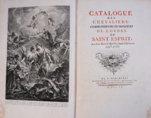[SAINT-FOIX (Germain-François Poullain de)]. Catalogue des chevaliers, commandeurs et officiers de l'Ordre du Saint-Esprit, avec leurs noms & qualités, depuis l'institution jusqu'à présent. [Paris], de l'Impr. de C.-J.-F. Ballard, 1760. Fort...
