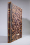 Simon, 1835. Trois ouvrages en un volume in-folio, demi-chagrin brun époque, dos lisse, auteur, titre et roulettes dorées (dos et coupes frottés, coins émoussés, rouss. et brunissures). Réunion de trois ouvrages de compositions calligraphiques reproduites en lithographie, chacun composé de 40 planches dont le titre, soit 120 planches. La pl. 39 (manquante ?) du premier album est remplacée par une page de titre d'un autre recueil, l'Album du Moyen-Âge, et la dernière planche de cette partie est une vue de la cathédrale de Strasbourg.