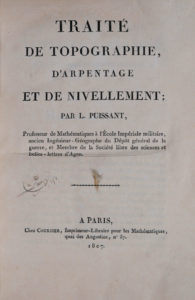 PUISSANT (Louis). Traité de topographie, d'arpentage et de nivellement. A Paris, chez Courcier, 1807-1810. Deux parties dont un Supplément, en un volume in-4, XX-331 p., [10] f., 6 planches dépliantes ; 143 p., [4] f., 1 planche, 1 tableau,...