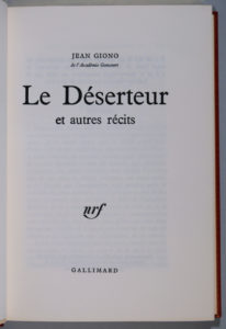 GIONO (Jean). Le déserteur et autres récits. Préface de Henri Fluchère. Paris, Gallimard, 1973. In-8, 261 p., maroquin rouge, dos lisse, auteur, titre et date dorés, plats couverts d'une feuille de liège, laissant visible tout autour un cadre...