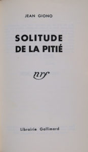GIONO (Jean). Solitude de la pitié. Paris, Gallimard, Paris 1932. In-12, 222 p., demi-chagrin bordeaux à coins, dos à 4 nerfs, auteur et titre dorés, tête dorée, couv. et dos conservés [M. Richard]. Édition en partie originale de ce recueil...