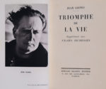 GIONO (Jean). Triomphe de la vie. Supplément aux Vraies richesses. Paris, Grasset, 1942. In-12, 295 p., demi-maroquin havane à bandes, dos lisse, auteur, titre et date dorés, feuille de bois clair aux plats, doublures et gardes assorties, tête...