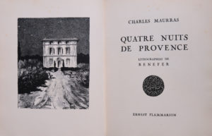 RENEFER. MAURRAS (Charles). Quatre nuits de Provence. Paris, Flammarion, 1930. In-8, 90 p., demi-basane fauve à bandes, dos lisse orné d'une pièce noire mosaïquée portant un semé de points dorés, nom d'auteur doré sur pièce noire, titre...