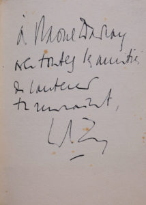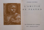 contreplats bordés de maroquin et d'un filet doré, tête dorée, non rogné, couv. et dos conservés, étui [M. Richard] (qq. rousseurs). Deuxième édition, orné d'un portrait de Platon en frontispice, d'un bandeau et d'un cul-de-lampe dessinés et gravés sur bois par Albert Decaris. Exemplaire hors commerce, enrichi d'un envoi autographe signé de l'auteur, destinataire non identifié, « avec toutes les amitiés de l'auteur très reconnaissant ».