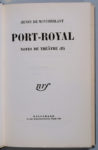 plats, tête dorée, non rogné, couv. et dos conservés [Devauchelle] (dos lég. passé, petit accroc au bord d'une coiffe de queue). - Celles qu'on prend dans ses bras. Notes de théâtre (I). 1950. 220 p. Édition originale : Un des 215 exemplaires sur vélin pur fil Navarre (n° XXXVIII), second papier après 15 vélin de Hollande. - Port-Royal. Notes de théâtre (II). 1954. 222 p. Édition entièrement remaniée. Exemplaire H.C. sur vélin pur fil non justifié. Soit 2 volumes.