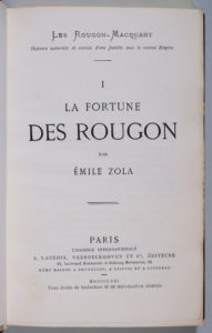 ZOLA (Émile). La fortune des Rougon. Paris, Lacroix, Verboeckhoven et Cie, 1871. In-12, 400 p., demi-maroquin bordeaux à coins, dos à cinq nerfs, caissons bordés de multiples filets à froid, date dorée en queue, tête dorée, non rogné,...