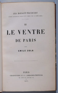 ZOLA (Émile). Le ventre de Paris. Paris, Charpentier, 1873‎. In-12, [2] f., 358 p., demi-maroquin bordeaux à coins, dos à cinq nerfs, caissons bordés de multiples filets à froid, date dorée en queue, tête dorée, non rogné, couverture...