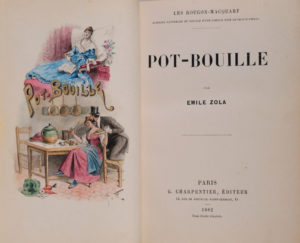 ZOLA (Émile). Pot-Bouille. Paris, Charpentier, 1882. In-12‎, [2] f., 495 p., demi-maroquin corail à coins, tête dorée, dos lisse orné de quatre caissons à losanges et semés de points dorés, pièce de titre noire, tête dorée, non rogné,...