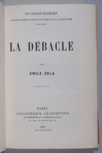 ZOLA (Émile). La débâcle. Paris, Charpentier et Fasquelle, 1892. Fort in-12, [2] f., 636 p., demi-maroquin corail à coins, tête dorée, dos lisse orné de quatre caissons à losanges et semés de points dorés, pièce de titre noire, tête...