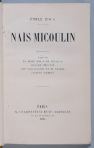 ZOLA (Émile). Naïs Micoulin. [Suivi de] Nantas ; La mort d'Olivier Bécaille ; Madame Neigeon ; Les coquillages de M. Chabre ; Jacques Damour. Paris, Charpentier, 1884. In-12, 379 p., demi-veau sable époque, dos à 5 nerfs, pièce d'auteur rouge,...