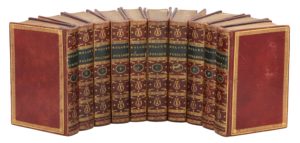 Paris, Plassan, 1787. 10 volumes in-18, maroquin rouge, grecque dorée en encadrement, dos lisse orné, pièces de titre et de tomaison vertes, tranches dorées (Reliure de l'époque).Édition originale de cette traduction en prose réputée, imprimée en regard du texte italien.