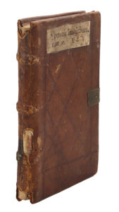 Pforzheim, Thomas Anshelm de Bade, 1509. In-4 de [56] ff., basane fauve estampée sur ais de bois, filets à froid en encadrement et en treillage sur les plats accompagnés de phylactères, fleurons et rosaces à froid, pièce de titre manuscrite en haut du premier plat, dos à trois doubles nerfs, agrafes métalliques (Reliure de l'époque).Édition originale rare de cet ouvrage de l’humaniste de Tübingen Heinrich Bebel (1472-1518) à la gloire de la nation souabe et du duc Ulrich de Wurtemberg. Elle forme la seconde partie du volume intitulé Opera Bebeliana sequentia publié à Pforzheim en 1509. L'exemplaire a été amputé de la première partie.