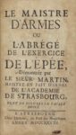MARTIN — Le Maistre d'armes ou l'abrégé de l'exercice de l'épée.