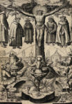 La première de ces figures est tout à fait étonnante : on y découvre Jésus Christ crucifié à un arbre, aux branches duquel sont pendus six saints personnages, tandis que cinq autres saints transpercés des instruments de leur martyr se tiennent assis sur des fleurs géantes parsemant le sol (p. 1).