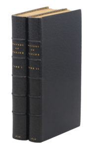Paris, Claude Barbin, 1676. 2 volumes in-12, maroquin bleu nuit janséniste, dentelle intérieure, tranches dorées (Devauchelle).Première édition collective, rare et recherchée, de premier état, c'est-à-dire sans Phèdre, qui n'était pas encore parue.