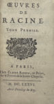 Le premier tome est paru initialement sous la date de 1675. Mais, en 1676, Racine modifia la préface d'Alexandre en faisant cartonner les 2 ff. qui la composaient et les 2 ff. liminaires du premier tome, réimprimés à la date de 1676 afin d'harmoniser l'édition. L'exemplaire appartient à ce second tirage dont les deux titres sont datés de 1676.