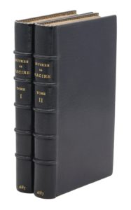 Paris, Claude Barbin, 1687. 2 volumes in-12, maroquin bleu nuit janséniste, dentelle intérieure, tranches dorées (E. Maylander).Seconde édition collective, importante pour les variantes qu’elle offre avec la première collective de 1676.