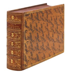 Paris, Jean Messager, 1636. 2 tomes en un volume in-4 oblong, veau marbré, triple filet doré, dos orné, tranches rouges (Reliure pastiche).Un tableau des plus complets du royaume de France au xviie siècle.