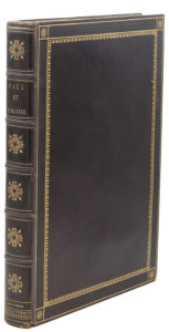 Paris, Pierre Didot l'aîné, 1806. In-4, maroquin aubergine à long grain, bordure à froid sertie de filets et de roulettes dorés, dos orné, dentelle intérieure, tranches dorées (Simier).Superbe édition du chef-d'œuvre de Bernardin de Saint-Pierre, la dernière parue de son vivant et revue par ses soins. Elle donne le texte définitif du roman, précédé d'une importante préface.