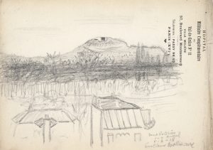 Apollinaire (Guillaume). Dessin original au crayon, avec légende autographe, signé et daté Auteuil, 6-2-18, un feuillet in-12 oblong, sur papier à en-tête imprimé Hopital Militaire Complémentaire du Val-de-Grâce n° 11 Villa Molière, 19,5 x...