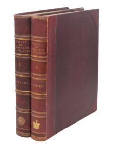 Paris, Gruel & Engelmann, 1887-1905. 2 volumes in-4, demi-chagrin brun avec coins, dos orné, tête dorée (Reliure de l'époque).Édition originale d'un des meilleurs manuels sur la reliure, illustré de nombreux fac-similés et reproductions in et hors texte en noir et en couleurs. Le premier tome a été tiré à 1000 exemplaires numérotés et le second à 700.