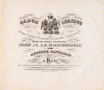 PANSERON, Auguste. Album Lyrique composé de douze Romances, Chansonnettes et Nocturnes &tc. Paris, A. Petit ; Londres, Gouling d’Almaine, [vers 1830]. In-4 oblong. Maroquin rouge à long grain, roulette à froid et dorée, armes dorées, gardes de soie bleue (Reliure de l’époque). 12 morceaux de musique gravés, chacun accompagné d’une lithographie. Ouvrage dédié à Louise d’Artois, fille de la duchesse de Berry. Exemplaire de présent ("De la part de l'auteur" sur le premier plat).