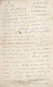 avec enveloppe timbrée, sous chemise demi-maroquin noir moderne. BELLE LETTRE D'EXIL, INÉDITE. Le destinataire de cette longue lettre est Théophile Briant, journaliste et écrivain breton, directeur de la revue Le Goéland, ancien ami de Céline. Détenu depuis plus d'un an, celui-ci lui écrit de sa prison de Copenhague, pour lui raconter tous les événements survenus dans sa vie depuis son départ pour l'exil en 1944. Céline peut enfin lui écrire : mon courrier est absolument libre. Il en profite donc pour raconter longuement son odyssée et ses misères, puis dire son sentiment - sévère - sur la France. Nous sommes en lambeaux mon vieux après un supplice qui dure depuis trois ans. Ma pauvre Lucette a du me défendre contre le monde entier, toute seule dans ce pays devenu lande à cauchemar. Leur situation est désastreuse : Tout s'est tourné contre nous, le monde entier, et les amis et amies. Ruinés, pelés, brulés, bombardés, incarcérés, outragés sans cesse, menacés, leurrés, nous n'avons plus rien et plus grand'chose de gout de vivre. Sans patrie, sans toit, sans lit, bientót sans culotte, des chiens lépreux sur les routes des prisons d'Europe. Et tout d'un coup cette phrase qui nous glace : Je ne sais pas quel crime j'ai commis (je ne m'en reconnais aucun) mais j'ai payé pour tout un bagne et ma pauvre Lucette aussi. Ceux de Buchenwald avaient le monde entier avec eux et nous l'avons tout entier contre nous. Après avoir évoqué Milton Hindus, un professeur de Chicago qui va l'aider [et qui écrira plus tard un livre de souvenirs sur Céline], il revient à son sort : J'ai fait sept mois d'hópital. maigri de 48 kilos ! et même une maladie qu'on n'avait pas vue au Danemark depuis 3 siècles : la pellagre. Mais c'est surtout la France qui l'obsède : De France je ne reçois qu'outrages, insultes et crachats et de l'ambassadeur ici (qui a servi Vichy toute la guerre). La chasse à l'écrivain est certainement le sport national de la France. Je veux vivre au passé. Car au présent je suis le seul écrivain français je dis écrivain pas journaliste qui me sois tapé de la cellule et pas un petit peu. On a tué Denoël [son éditeur, assassiné] tu le sais. Les Français disait Voltaire : race légère et dure. Hélas c'est exact. Dure. Sans merci, sans creur. Après avoir demandé des nouvelles de son correspondant, il s'excuse : J'ai peine à tenir ma plume, de rhumatisme. J'ai cette écriture infâme. Suit ce post-scriptum griffonné rageusement: Pendant que je crève Montherlant qui a mille fois plus collaboré que moi [se] pavane à Paris.