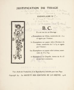 crayon de Blaise Cendrars : Ils vinrent chez lui pour voir l'auteur et trouvèrent l'homme... Pascal. EXEMPLAIRE N°C à l'ami t'Serstevens, ce poème de l'homme Cendrars. Nice fin juillet 1918 CET EXEMPLAIRE DE CHAPELLE, NON PLIÉ, EST LE PREMIER EXEMPLAIRE SORTI, QUINZE JOURS AVANT LA MISE EN VENTE , comme l'atteste la note de t'Serstevens jointe au volume : ... Blaise venait d'en recevoir une dizaine, non brochés, et me l'a apporté à l'hâpital militaire de Nice où j'étais en convalescence. Il n'est donc pas numéroté, étant hors série, et la couverture n'est pas coupée à la dimension des feuillets du texte. Il est probable qu'il n'en existe pas d'autre de cet aspect. A.t.S. On a joint un plat de l'enveloppe dans laquelle t'Serstevens rangeait les plaquettes de son ami Cendrars. Elle porte de sa main les descriptions des exemplaires.