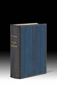 Cohen (Albert). Belle Du Seigneur. Paris, Gallimard, 1968. In-8, dos et bords de maroquin bleu, plats de feuilles de balsa teinté en bleu, doublure et gardes de même, dos lisse, tête dorée, non rogné, couverture et dos, étui (J. P. Miguet)....