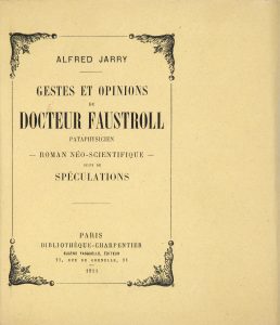 Jarry (Alfred). Gestes Et Opinions Du Docteur Faustroll pataphysicien. Roman néoscientifique suivi de spéculations. Paris, Charpentier, 1911. In-12, broché, à toutes marges, chemise-étui demi-maroquin bleu foncé, dos à nerfs orné de filets et...