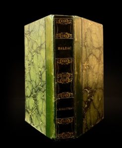 BALZAC Honoré César Birotteau. Chez l'éditeur Paris 1838. E.O. Deux volumes reliés en un, demi chagrin vert, dos lisse orné de dorures, trois tranches jaspées, relié sans les couvertures mais les deux pages de titres sont présentes, intérieur frais, étui.
