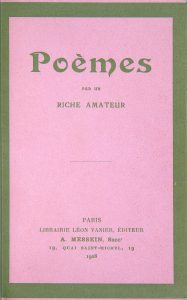 Larbaud (Valery). Poèmes Par Un Riche Amateur ou Quvres francaises de M. Barnabooth. Précédés d'une introduction biographique. Paris, A. Messein, 1908. In-12, maroquin vert vif, dos à nerfs, doublure de maroquin vieux rose, gardes de soie verte,...