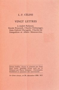 CELINE Louis-Ferdinand Vingt lettres. Le lérot rêveur s.l. décembre 1980. E.O. (pas de grand …