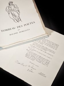 DORGELES Roland / DUNOYER de SEGONZAC André Le tombeau des poètes. Editions Vialetey Paris 1954. E.O. L'un des 108 ex. sur Rives. Exemplaire signé par l'auteur, l'illustrateur et l'éditeur. En feuilles in-4 sous chemise et étui.