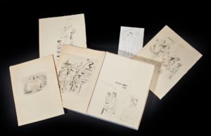 FABRE-LUCE Alfred / LEPAPE Claude Paris 1947. Les amis du livre moderne Paris 1950. E.O. L'un des 130 ex. sur Pur fil, seul grand papier (exemplaire nominatif au nom d'André GAVOTY). Bien complet de la suite des illustrations de LEPAPE sur Malacca blanc. Exemplaire ayant appartenu au Directeur de théâtre Jacques CREPINEAU avec une belle dédicace accompagnée d'un dessin original au crayon et 5 dessins originaux pleine page en couleurs. En feuilles in-8 sous chemise et étui.