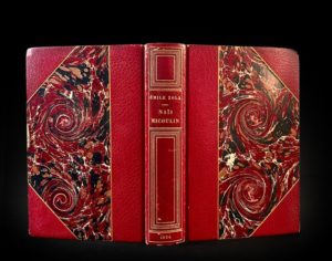 ZOLA Emile Naïs Micoulin. Charpentier éditeurs Paris 1884. E.O. L'un des 100 ex. sur Hollande, celui-ci n°36. Reliure in-12 à la bradel demi-maroquin vieux rouge à coins, dos lisse orné d'encadrement or et à froid, lettrines or et date en pied, couvertures, dos et témoins conservés, intérieur frais, quelques légères traces de frottements sinon très bel état (reliure signée Daravon).