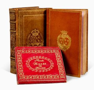 Portefeuille brodé par elle pour le duc d'Angoulême et 2 ouvrages à ses armes.