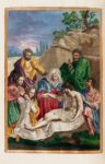 10 gravures en noir et blanc à pleine page et 20 grandes gravures tirées sur soie, puis peintes et brodées. 7 d’entre elles recouvrent 7 des 10 gravures en noir que compte l’édition. Ces planches, bordées d’un listel jaune brodé, ont été montées dans un encadrement de papier.