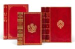 [NOUGARET, P.J.B.] Beautés de l'Histoire de Sicile et de Naples, ou précis des annales de ces peuples. Paris, Brunot-Labbé, 1818. In-12. Veau cerise, encadrement de filet et palmettes dorés, armes dorées, dos lisse orné (Reliure de l'époque). Dos passé, petites taches sur les plats. Frontispice et 8 planches gravées. Édition originale.