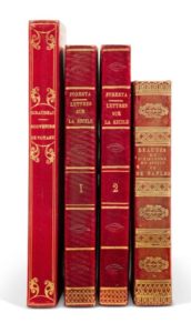 FORESTA, Marie-Joseph de. Lettres sur la Sicile. Paris, Pillet Aîné, 1821. 2 volumes in-8. Maroquin rouge à long grain, filet en encadrement, armes dorées, dos lisse orné, tranches dorées (Reliure de l’époque). Rousseurs. Exemplaire de dédicace. Édition originale.