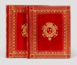 Manuscrits. 2 volumes in-8 (185 x 147 mm). Maroquin rouge à long grain, filets et roulettes dorés en encadrement, dont une fleurdelisée, armes dorées, dos lisse orné de fers dorés, roulette intérieure, doublure et gardes de tabis bleu, tranches dorées (Terzuolo, "papier du roi", avec son étiquette contrecollée au verso du premier feuillet de garde).