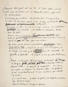 DE LA CÉLÈBRE PRÉFACE AU Bal du comte d'Orgel. Mort à vingt ans, en 1923, Radiguet laissait un roman inédit, Le Bal du comte d'Orgel, que ses amis, dont Cocteau, firent publier chez Grasset en 1924. Le livre s'ouvrait par une préface de Cocteau (parue juste avant dans Les Nouvelles littéraires du 28 juin 1924), qui deviendra célèbre et dont nous avons ici le manuscrit de premier jet. Manuscrit très émouvant, car écrit sous le coup de la mort de Radiguet. Il donne un premier état du texte : certains passages de l'imprimé ne s'y trouvent pas encore, tandis que d'autres sont par contre RESTÉS INÉDITS . Cocteau a notamment supprimé une phrase sur le délabrement final de Radiguet (Depuis quatre mois, un vagabond souhaitait guérir sa longue fatigue, traìnée de chambre d'hótel en chambre d'hótel), et un détail sur son agonie, qui attestait leur intimité ... il considérait ses mains, il me touchait les cheveux. Cependant, ce manuscrit est, soulignons-le, absolument complet, Cocteau se bornant par la suite à ajouter quelques passages, modifier certaines phrases, et inclure les trois notes de Radiguet dans un post-scriptum. Ce très beau texte est, en quelque sorte, la nécrologie d'un ami disparu trop tót, que Cocteau avait profondément aimé et qui le fascina. Raymond Radiguet est né le 18 juin 1903 ; il est mort, sans le savoir, le 12 décembre 1923, après une vie miraculeuse. N'accusez pas le destin. Ne parlez pas d'injustice. Il était de la race grave dont l'âge se déroule autrement. Mais, souligne Cocteau, Radiguet donne une dernière leçon de savoir-vivre ; il meurt au plus bel âge, pour vivre mieux. Il sentait bien qu'il allait mourir : Il classait, il recopiait. Et même, la mort m'éclaire son désordre fou : il fallait y voir l'enchevêtrement d'une machine qui taille le cristal. Raymond Radiguet change de forme. Dans un passage très poignant, Cocteau rapporte sa dernière rencontre avec Radiguet, terrassé par la typhoïde : Ecoutez, me dit-il le 9 décembre, écoutez une chose terrible. Dans trois jours - approchez-vous - dans trois jours je vais être fusillé par les soldats de Dieu. Comme j'étouffais de larmes, que j'inventais des renseignements contradictoires : Vos renseignements, continua-t-il, sont moins bons que les miens. L'ORDRE EST DONNÉ. J'ai entendu l'ordre. Plus tard, il dit encore : Il y a une couleur qui se promène et des gens cachés dans cette couleur. Cocteau décrit ensuite l'agonie de son ami. Il laisse trois volumes. Un recueil de poésies qui est une voix d'ange, LE DIABLE AU CORPS, chef d'&uvre de promesses, et les promesses tenues : LE BAL DU COMTE D'ORGEL. Cet ouvrage, il en reçut les épreuves, déjà malade. Il se proposait de ne faire aucune retouche. Il cherchait le négligé de la véritable élégance. Un tel négligé résulte d'un incroyable travail. On serait donc irrespectueux d'y mêler la mort. Après avoir évoqué les autres reuvres de Radiguet, il termine par la phrase célèbre : Le seul honneur que je réclame est d'avoir donné pendant sa vie à Raymond Radiguet, la place illustre que lui vaudra sa mort. Les 3 premières pages, comportant de nombreuses ratures et corrections, sont constituées par la préface, signée. Suivent 3 pages de notes très denses, véritable transcription par Cocteau des notes littéraires laissées par Radiguet. Dans celle intitulée Notes. Septembre 1920. 10 heures du matin. Vendredi, Radiguet évoque les enfants prodiges : ... L'âge n'est rien. C'est l'reuvre de Rimbaud et non l'âge auquel il l'écrivit qui m'étonne. Tous les grands poètes ont écrit à dix sept ans. Les plus grands sont ceux qui parviennent à le faire oublier. Dans celle titrée A propos du Diable au corps, Radiguet écarte toute intention autobiographique : On a voulu voir en mon livre des confessions. Quelle erreur ! Mais tous les prêtres connaissent bien ce mécanisme de l'âme., de fausses confessions, celles où l'on se charge de méfaits non commis, par orgueil. Et enfin, Le Bal d'Orgel - roman où c'est la psychologie qui est romanesque. ... Roman d'amour chaste aussi scabreux que le roman le moins chaste. Ces trois notes se retrouvent intégralement dans l'imprimé, en post-scriptum à la préface. PRÉCIEUX MANUSCRIT, d'un grand intérêt littéraire.