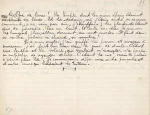 aux angles, dos lisse orné de même, titre à froid sur le dos, large bordure intérieure de veau fauve ornée d'un listel de veau mosaïqué noir, doublure et gardes de papier noir, étui (G. Schroeder). TRÈS PRÉCIEUX MANUSCRIT COMPLET DU PREMIER LIVRE DE REVERDY. Publié en octobre 1915, à "Paris, chez l'auteur" et aux frais de celui-ci, Poèmes en prose est le premier ouvrage de Reverdy. Celui-ci y affirme déjà toute sa personnalité, par un art entremêlé de pureté et de densité extrême. Citons le poème Retour (feuillet 26) : La maison qui ne monte plus, immobilise le paysage. Mais le soir, des lumières courent à travers les arbres et les fenêtres. J'ai deviné ton regard à travers tes paupières closes. Quel dessein a fait rougir ton front ? Le vieux monde t'observe dans la rue. Des gens qui n'ont jamais changé d'air, de sang, ni de morale sont venus t'attendre. Déjà tu te repens d'avoir couru vers cette tendresse trompeuse. On ne revient pas à son ancien nid sans risquer quelques désillusions. Pour tout cela j'avais cru que tout allait s'arranger et aussitót j'avais préparé mon retour. Mais toi, toi que fais-tu toujours à cette même place ? Ce sourire et cette main tendue, geste que je connais rassure-moi. Je m'approche et je serre cette main, elle est blanche et froide. Celui que je prenais pour mon ami est une statue d'homme célèbre. La comparaison du manuscrit avec l'édition originale de 1915 montre 2 petites variantes. Celle faite avec le texte imprimé définitif (Plupart du temps, 1945), fait apparaìtre de très nombreuses variantes de texte (plus de 170, en tout). On sait que ce fut toujours l'habitude de Reverdy de corriger ses anciens textes lorsqu'il les rééditait. A noter qu'au bas de certains poèmes figurent, signées M. J., des appréciations telles que Un des meilleurs, Magnifique, d'une autre main, qui pourrait être celle de Max Jacob. Comme le montrent de nombreuses indications de typographe d'une autre main, il s'agit là du manuscrit même qui servit à l'impression. Reliure de l'époque signée de Germaine Schroeder. Cette élégante reliure est similaire à d'autres réalisées pour Coco Chanel. Comme son amie Misia Sert, elle faisait appel à Germaine Schroeder pour habiller ses exemplaires. Il est souvent difficile de savoir avec certitude pour laquelle des deux femmes la reliure a été faite. Accident à la coiffe supérieure, mors fragiles, déchirures sans manque à 5 feuillets (25 à 29) n'atteignant pas le texte. 163