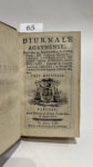 [BRÉVIAIRE]. Diurnale agathense [...] Pars Æstivalis. Parisiis, Apud Bibliopolas Usuum Parisiensium & Agathensium, 1765. Petit in-12, maroquin rouge, large dentelle dorée aux petits fers, pièce d’armes aux angles, armoiries au centre, dos à...