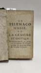 [FÉNELON - FAYDIT (Pierre Valentin)]. La Telemacomanie, ou La Censure et critique du Roman intitulé, Les Avantures de Telemaque Fils d’Ulysse, ou suite du quatrième Livre de l’Odyssée d’Homere. A Eleuterople, Chez Pierre Philalethe, 1700....