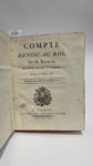 NECKER (Jacques). Compte rendu au Roi […] Au mois de Janvier 1781. A Paris, De l'Imprimerie du Cabinet du Roi, 1781. In-4°, demi-veau, dos à nerfs orné (reliure de l’époque). ÉDITION ORIGINALE. Deux cartes mises en couleurs (gabelles et...