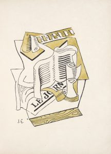 110 exemplaires. UN DES 5 PREMIERS SUR JAPON IMPÉRIAL (n° 4) signés par l'auteur et l'artiste comportant : - LES 3 DESSINS HORS TEXTE REHAUSSÉS ÀL'AQUARELLE PAR JUAN GRIS (indiqué dans la justification comme caractéristique des 5 exemplaires sur Hollande). - un POÈME AUTOGRAPHE DE PIERRE REVERDY : Jeux d'hommes sous la tente (18 vers). Le dessin original annoncé à la justification du tirage manque.